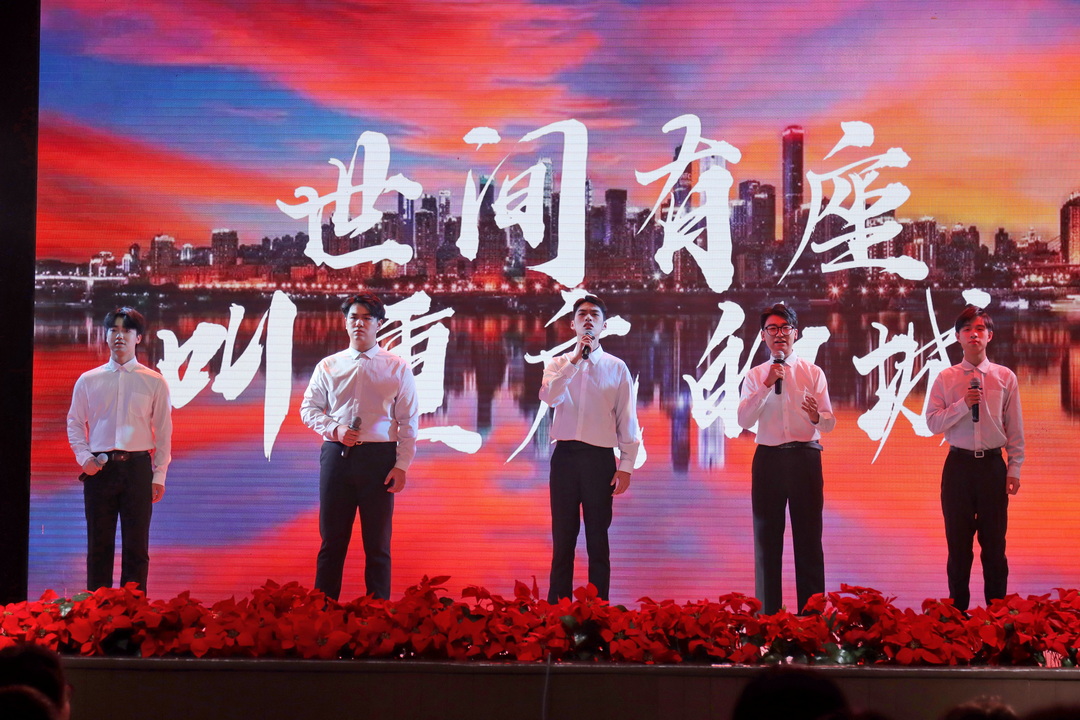 专场演出中,重庆医科大学学生艺术团带来朗诵《值得》,让同学们见证了先驱者为了祖国甘愿奋斗与等待二十八年的决心。西南政法大学蓝天话剧队表演了原创剧目《债》,警醒青年一代理性应对当今网络环境的阴暗与危险,勇于承担社会责任和时代使命。重庆人文科技学院艺术学院带来诗朗诵《世间有座叫重庆的城》和戏剧《志在黄埔》,前者让同学们感受到了重庆这座城市的美丽与力量,后者带领大家重温革命热血故事与爱国情怀。重庆大学美视学院表演系带来小品《原来你是这样的人》和《大赢家》,以轻松幽默的故事情节切入对友情与爱情的探讨,收获了同学们的一片爽朗笑声。我校音乐组杨振巍老师带来个人朗诵《天上的草原》,还与刘皓蓝老师、谢雅光老师、任倩玉老师共同出演了小品《警察和我》,赢得了同学们的阵阵掌声。
