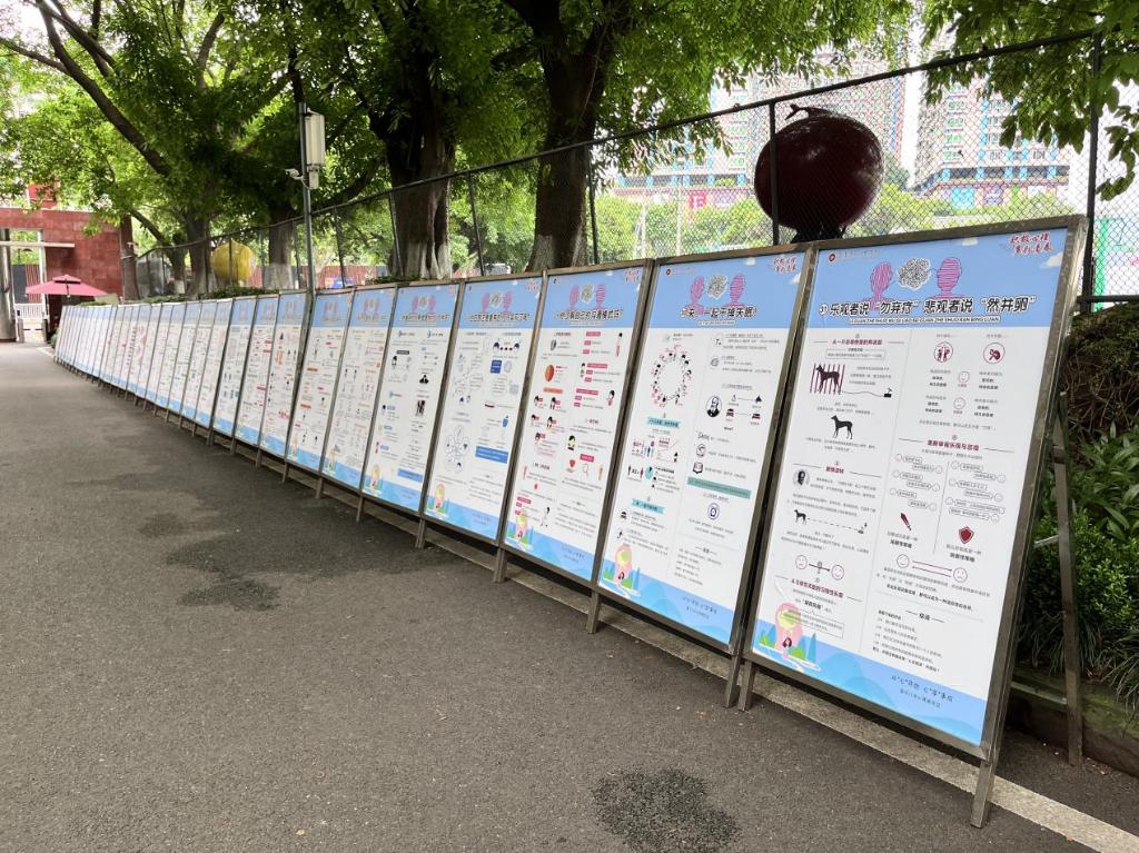 重庆八中学生心理与生涯发展指导中心副主任王强介绍道,此次宣传周活动也是学校心理健康宣传教育月的其中一部分,5月初学校开展了学生心理治愈系心理漫画创作比赛活动和“积极心理快乐青春”高一年级家长主题班会活动,接下来学校还会开展积极心理主题朝会讲话活动、班主任关爱心理减压团体辅导活动以及心理委员、学生干部心理健康培训活动。学校高度重视学生健康教育工作,正着力打造重庆八中学生心理与生涯发展指导中心,以促进学生的心理和谐为目标,围绕积极情绪、积极认知、积极人际和积极品质等方面设计积极心理课堂,形成包括高一必修课、高二选修课、社团兴趣课和专家讲座的课程体系。此外,学校还面向班主任定期开设心理健康教育培训及线上课程,面向家长进行心理健康教育科普,使家校共筑青少年的心理健康保护网。