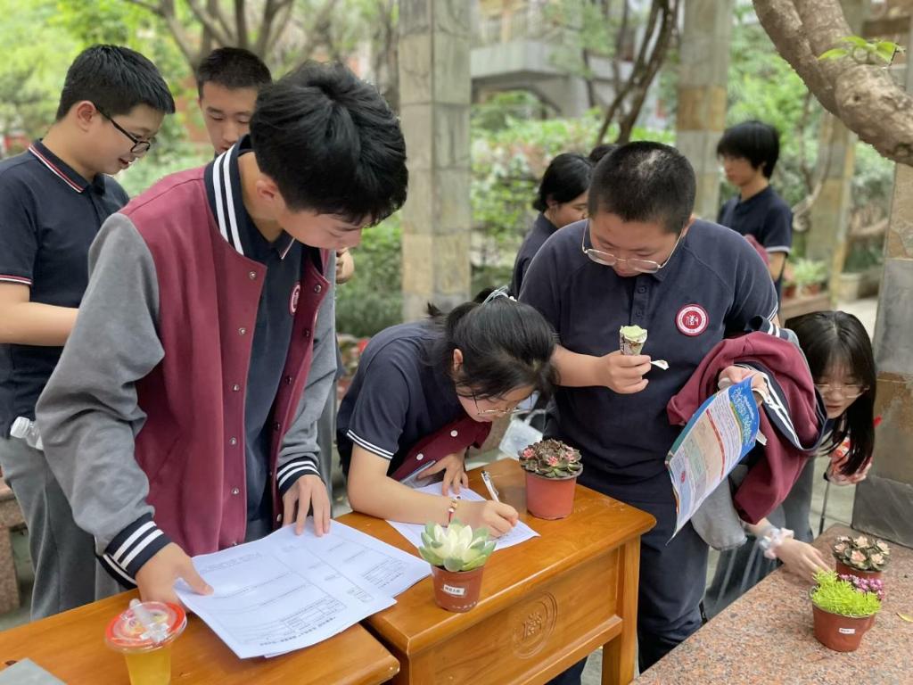 学生们在“绿植领养”处领养植物。学校供图 华龙网发